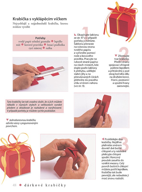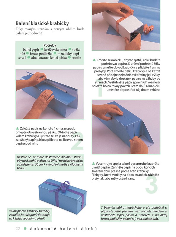 Mnozí z nás si možná říkají, že zabalit dárek je věc jednoduchá – vezme se papír, přehne, přilepí… ale když přijde na věc, najednou zjišťujeme, že se papír krčí, trhá, výsledek je nevzhledný a kazí dojem z dárku uvnitř. Naše kniha vám pomůže lehce zvládnout zabalení jakéhokoli dárku, včetně neobvyklých tvarů tak, že obdarovaného jistě okouzlí na první pohled.