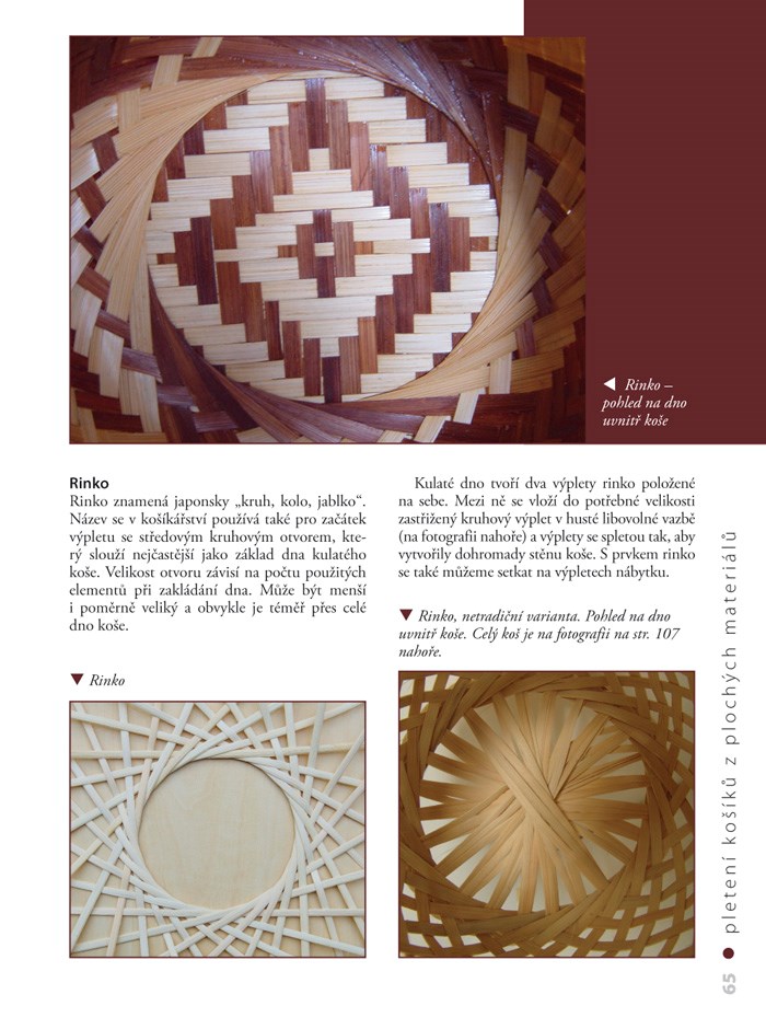 Kniha je zaměřena na košíkářské techniky, které využívají plochých materiálů – vrbové a pedikové šény a pásky, ale i papír. Tyto materiály jsou velmi různorodé, protože se liší svou délkou, ohebností a pevností. S některými lze pracovat stejně jako s kulatými pruty, ale u většiny se využívá specifických vazeb, se kterými se můžete setkat u tkanin. Dvě základní vazby (plátnová a šikmá plátnová vazba) dovolují neuvěřitelnou rozmanitost tvarů košů. Pozornost je věnována i dekorativním vazbám, různým způsobům ukončení a zdobným prvkům. Publikace volně navazuje na Pletení košíku z naší edice Tradiční řemesla od stejné autorky a rozšíří tak vaše košíkářské umění o další techniky.