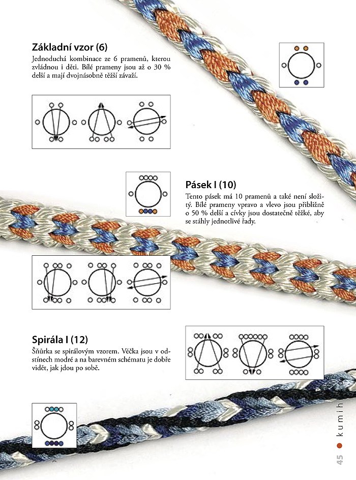 Kumihimo je japonská technika splétání ozdobných šňůr a textilních doplňků. V Japonsku je velmi populární a v poslední době si získává stále větší oblibu i u nás a v celé Evropě. Textilní doplňky a šňůrky se touto technikou pletly tradičně z hedvábí, ale lze použít i jiné materiály – viskózu, bavlnu, vlnu nebo dokonce drátky. Kumihimo se využívá i v textilní bižuterii. Kniha vás provede krok za krokem jednotlivými postupy a vzory, které zde najdete na přehledných fotografiích i ilustračních schématech. Spolu se srozumitelně napsaným textem tak dostanete kompletního průvodce, podle kterého rychle zvládnete danou techniku a budete se moct plně soustředit na vlastní nápady. Stejně jako v ostatních knihách z naší edice Výtvarné techniky si ale samozřejmě nápady a tipy na výrobky můžete najít přímo v knize.
