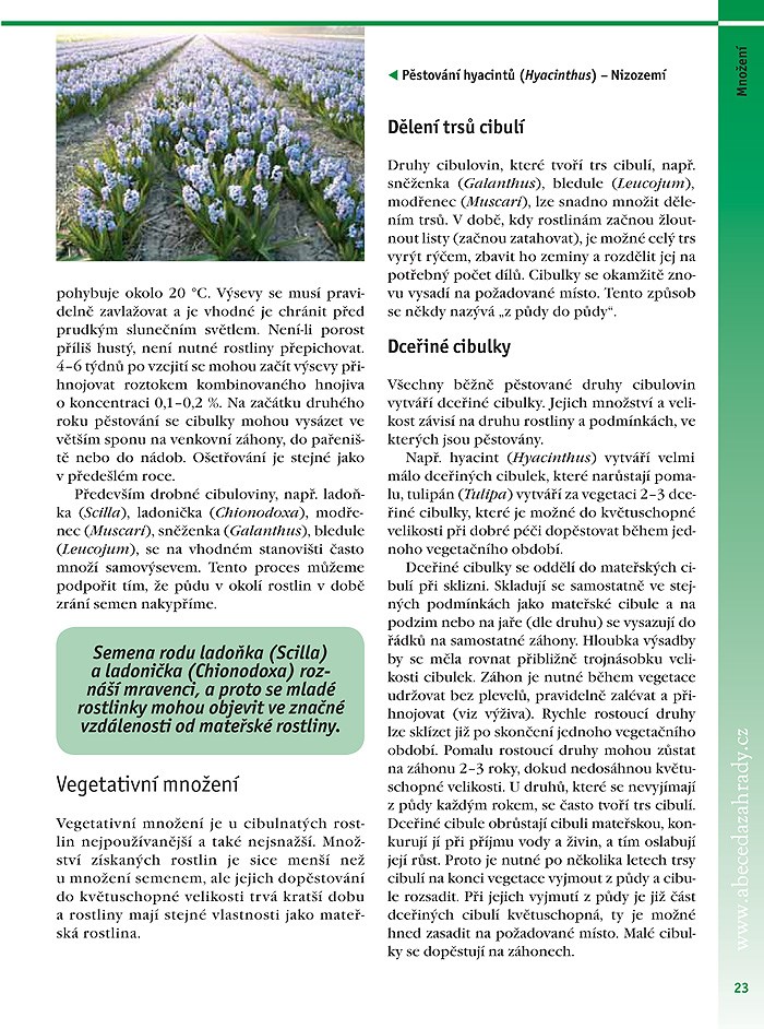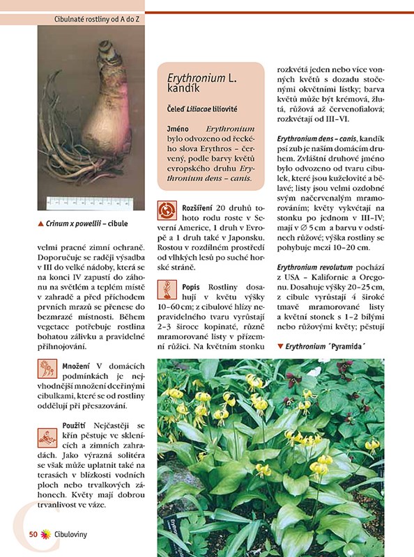 Zahrada bez okrasných cibulovin by byla jako růže bez květu. Vždyť celá zahradnická sezóna je orámována úžasnými květy sněženek, ladoněk, modřenců, hyacintů, tulipánů a narcisů, ale i barevnými ohňostroji lilií, kandíků a řebčíků. Od jara až do podzimu nám připravují cibulnaté rostliny spoustu radosti; dostatek krásy od sněženek až po šternbergie.