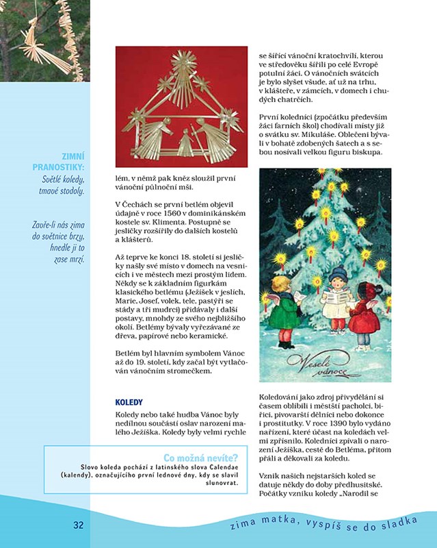 Zima nebyla pro naše předky jen dobou chladu a zmaru, její zdánlivá ospalost v sobě totiž skrývá i plamének nového světla, velkého očekávání na nový život. Právě toto roční období je spojeno s obecně snad nejoslavovanějším svátkem roku – s Vánocemi. Ale zvykoslovně vlastně zima začíná už adventem a končí až masopustem.