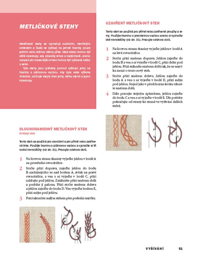 Šití patří k nejstarším dovednostem – jehly se v Evropě běžně používaly již zhruba 20 000 let př. n. l., a to jak k dekorativním, tak k praktickým účelům. Během let bylo vytvořeno velké množství stehů, z nichž některé mají velmi specifické a jiné velmi široké využití. V této knize je uvedeno 263 stehů, od běžně používaných pro vyšívání, ozdobné řasení a práci s plátnem až po jejich varianty a speciální stehy, které rozšíří vaše možnosti. Naleznete zde fotografie, na nichž můžete vidět, jak steh přesně vypadá, popis jeho hlavního využití a srozumitelné postupy včetně názorných nákresů. V první části knihy se seznámíte s vybavením, které budete pro svou práci potřebovat: s tkaninami, nitěmi a jehlami používanými pro jednotlivé typy stehů. Dozvíte se, jak zacházet s předlohami a pochopíte základní techniky vyšívacích stehů, jako je jejich zahájení a ukončení. Další části této knihy jsou věnovány třem hlavním typům výšivek a stehům, které se pro ně používají. Kapitola Vyšívání na tkaninu se zabývá různými povrchy, vyšíváním ve volném stylu, počítání nití a práci s korálky. V části s názvem Sámkování se naučíte základy řasení a stehy běžně užívané k tomuto účelu. V následující kapitole je vysvětleno jak pracovat se stramínem a samozřejmě ukázáno, které stehy jsou na něj nejvhodnější. V závěrečné části se dozvíte, jak zacházet s hotovou výšivkou. Jsou zde návrhy, jak co nejefektivněji vystavit vaši výšivku a jak o ni dále pečovat, aby vám přinášela radost po mnoho dalších let.