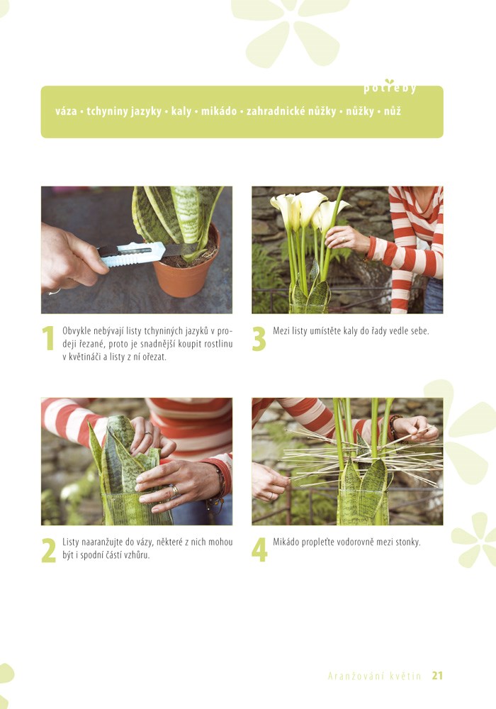 Vyzdobte si svůj dům květinami. Autorky pro vás připravily svěží, moderní aranžmá a vazby v různých stylech. Poradí vám jak při slavnostní příležitosti, tak ve chvíli, kdy budete chtít zkrášlit všední prostředí. Zjistíte, jak je snadno a rychle možné vyrobit si působivou dekoraci, a to i s minimem materiálů a pomůcek. Kniha je členěna do pěti kapitol, ve kterých se dozvíte, jak aranžovat mísy, vázy, dekorace nebo jak vytvořit efektní kytici či věnec. Pro každý způsob dekorování pak najdete inspiraci pro všechny čtyři roční období. V publikaci jsou samozřejmě podrobně popsány veškeré pomůcky i materiál a projekty jsou zpracovány formou fotografických návodů.