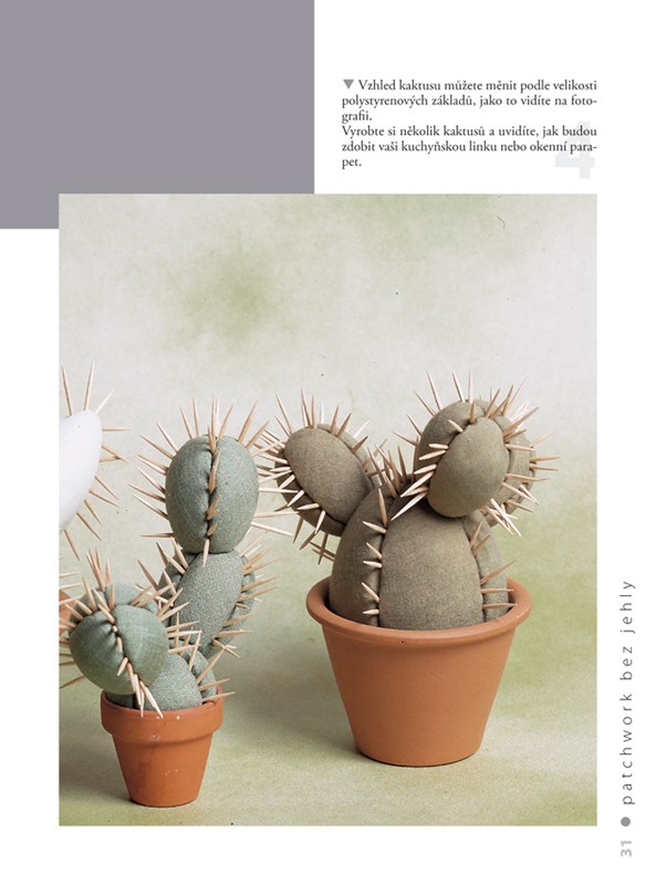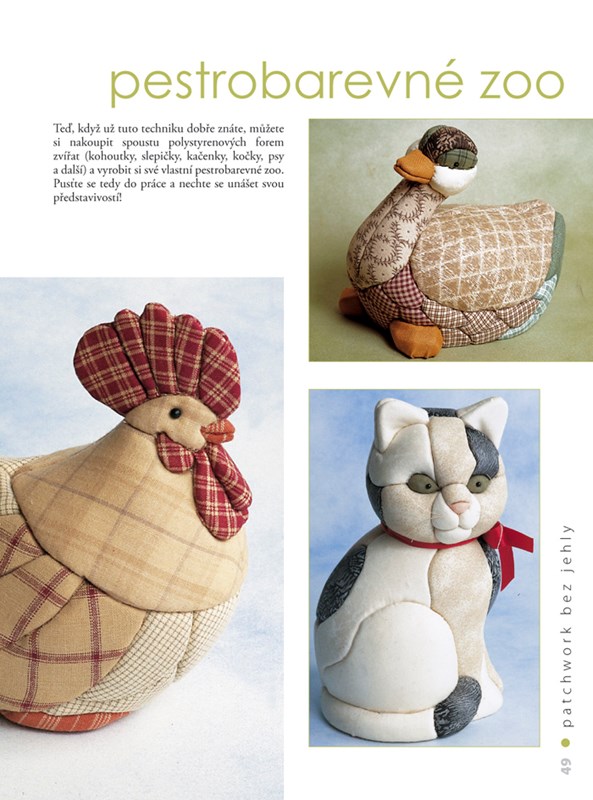 Znáte patchwork bez jehly? Tato technika je vhodná i pro ty, kteří nemají zkušenosti se šitím či dostatek trpělivosti na tradiční patchwork. Bez jehly a nitě se zcela obejdete a kromě zbytků látek různých barev a vzorů budete potřebovat pouze polystyrénové formy, řezací nůž a občas lepidlo. Podle fotografických návodů si zhotovíte mnohé dekorativní i praktické předměty: krabice a rámečky, girlandy a mobily, nástěnné hodiny, velikonoční vajíčka, zvonky a vánoční ozdoby. Až si techniku vyzkoušíte ve snažších i obtížnějších projektech s použitím forem nejrůznějších tvarů, jistě sami přijdete na další způsoby jak ji využít a vytvořit si originální předměty, které mají stejné kouzlo jako tradiční patchworkové výrobky.