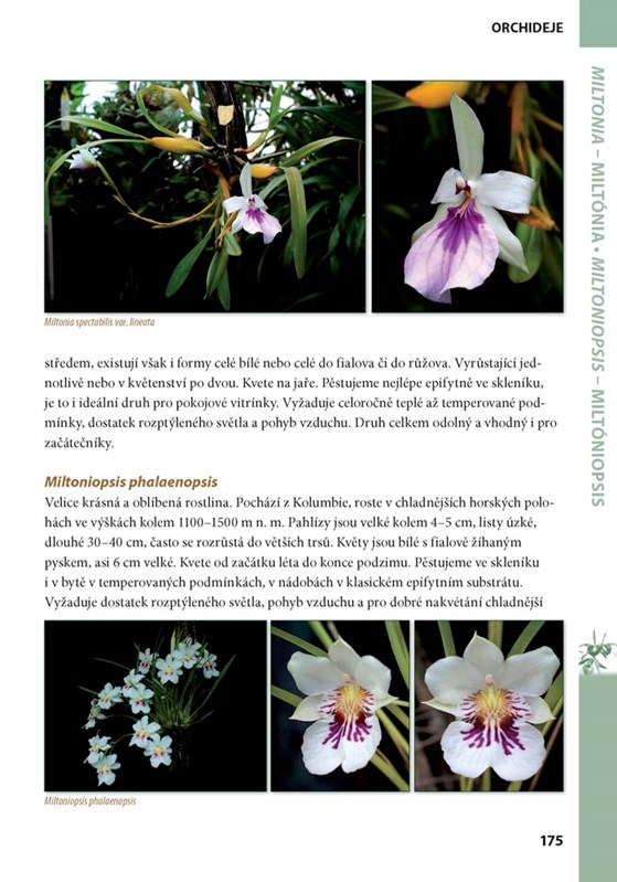 Obrazová část obsahuje více než 750 plnobarevných fotografií a podává ucelený přehled o nejčastěji pěstovaných druzích. Tyto orchideje je možné pěstovat v domácích, amatérských podmínkách a péči o ně zvládnou i začátečníci či mírně pokročilí. Na závěr této části uvádí autor i některé méně známé druhy, vhodné spíše pro pokročilejší pěstitele.