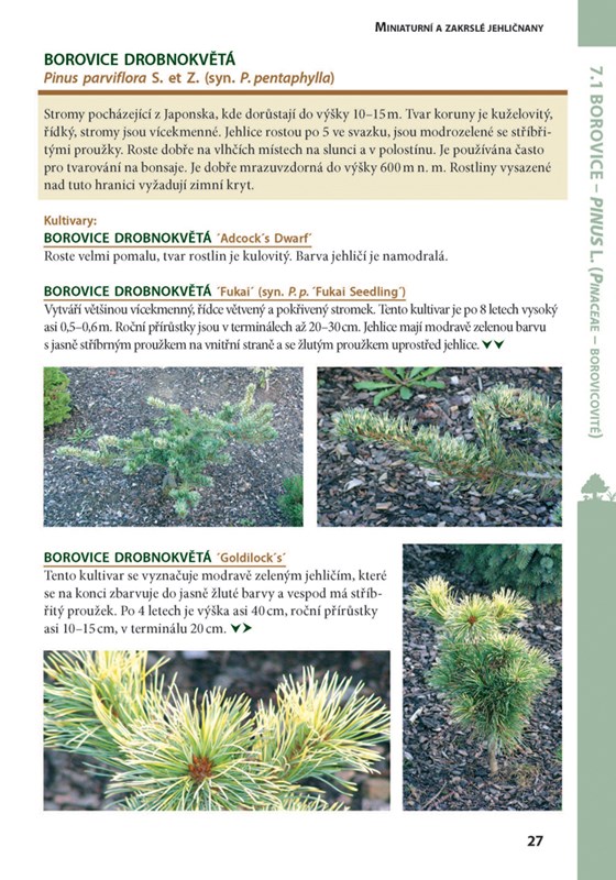 Tato publikace poskytuje rady všem, kteří se rozhodli založit si, předělat či jen vhodně doplnit svou zahradu nebo skalku. Přináší užitečné informace o ročních přírůstcích jednotlivých druhů a kultivarů miniaturních i zakrslých jehličnanů. Poskytne tipy, kde je vhodné je pěstovat, jaké postupy dodržet, případně čeho se naopak vyvarovat.