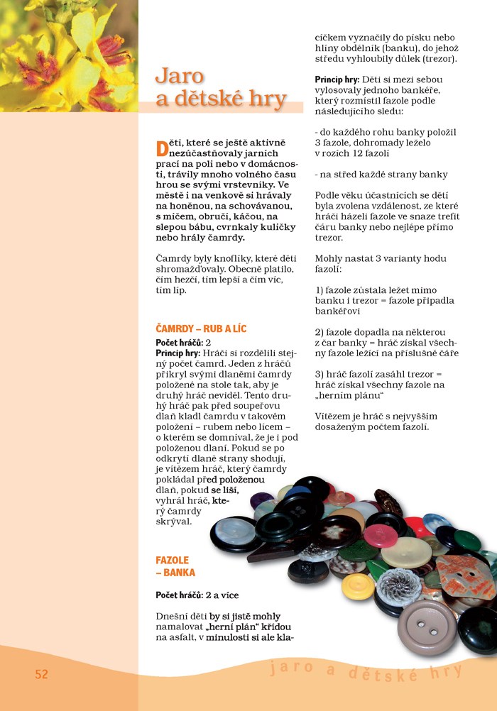 Kniha vás seznámí s nejvýznamnějšími svátky a lidovými obyčeji celého roku. Zároveň v ní najdete řadu užitečných nápadů k výrobě zvykoslovných předmětů: na jaře si upletete velikonoční pomlázku, v létě uvijete svatojánský věnec z lučního kvítí, na podzim si vyrobíte pestrobarevného papírového draka a v zimě ozdobíte vánoční stromeček tradičními lidovými ozdobami. Navíc vaše děti na těchto stránkách objeví starodávné kouzlo her našich babiček a dědečků a kuchařky se zde mohou inspirovat řadou osvědčených receptů ze staročeské kuchyně.