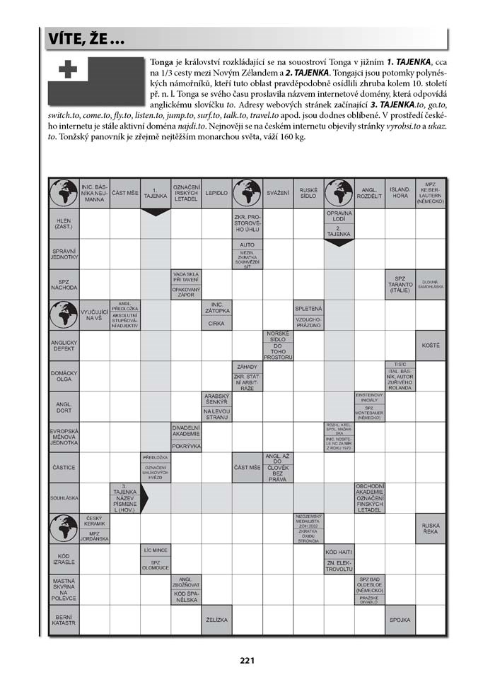 Publikace nejen pro ukrácení dlouhé chvíle, trénink mozkových závitů a test vlastních znalostí vás uvede formou luštění křížovek a jejich tajenek do historie, geografie nebo kuriozit zemí celého světa, co jich jen na zemských kontinentech je. Dostává tek do rukou unikátní formu lexikonu zemí světa, k jehož obsahu v úplnosti se ovšem musíte .... poněkud proluštit.