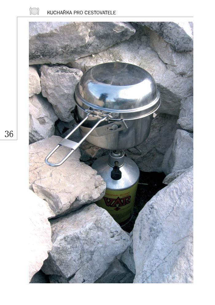 Následuje část zásadní, tedy receptová. V té najdete osvědčené cestovatelské polévky, vydatné vodácké předkrmy a chuťovky, vydatná poutnická jídla z jednoho hrnce a další hlavní chody (ty s použitím turistického salámu jsou samozřejmostí). Jídla masitá i bezmasá, vařená, opékaná i grilovaná.