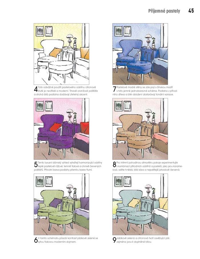 Publikace obsahuje také inspirativní ilustrace, jež vám umožní vidět celou řadu místností v nekonečné řadě působivých barevných kombinací, abyste si mohli vybrat tu pravou, která lahodí právě vašemu oku. A nechybí zde ani zásadní rady pro výběr těch nejvhodnějších nátěrů a barev pro váš styl, domov i rozpočet.