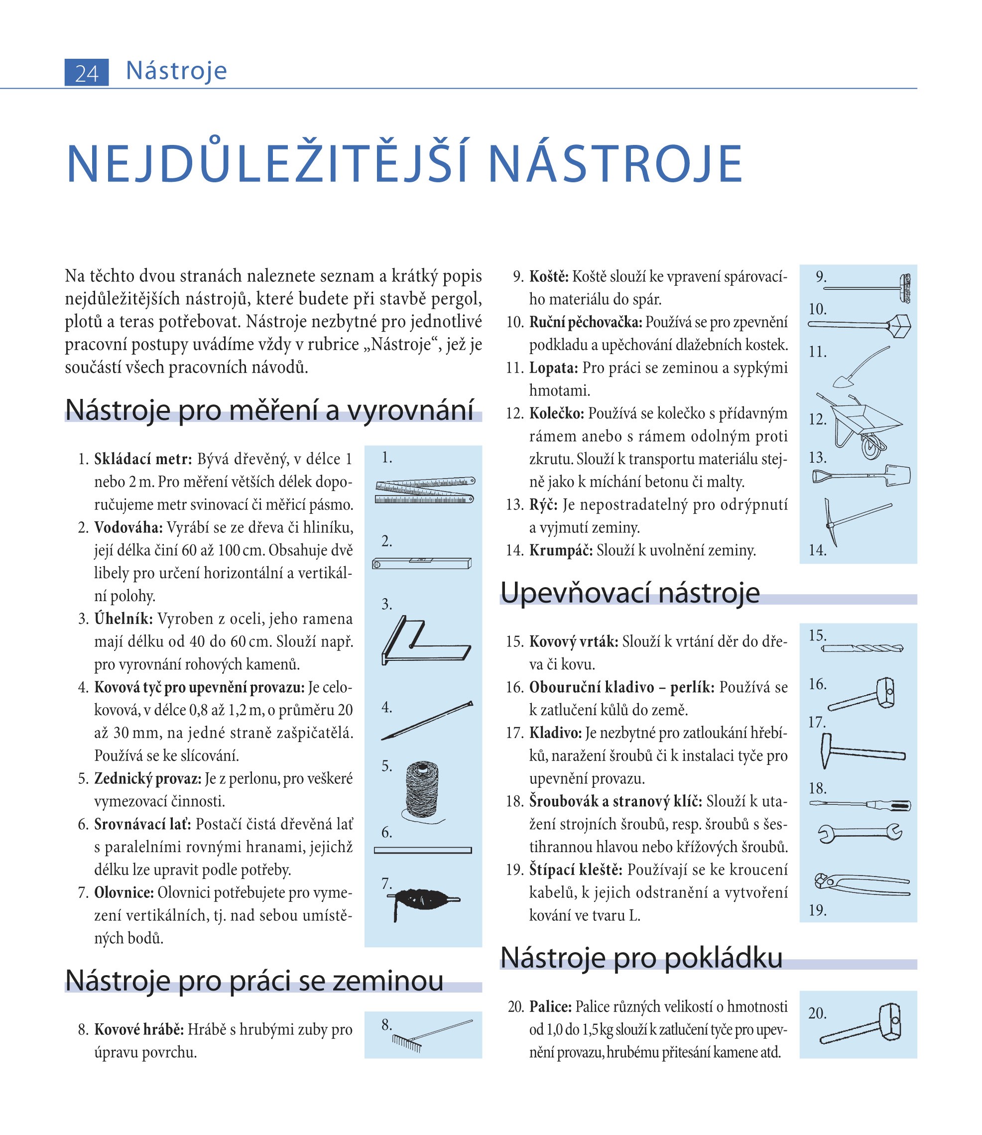 Rádi byste vybudovali příjemné posezení na terase zkrášlené elegantní pergolou? Plánujete stavbu plotu, který vás ochrání před zvědavými pohledy sousedů? Tato kniha vám poradí jak na to. Naleznete zde všechny potřebné informace týkající se výběru materiálu, konstrukčních řešení a pracovních postupů – od výběru dlažby a vzorů pokládky až po podrobný návod ke stavbě terasy se zídkou či pergoly napojené na stěnu domu.