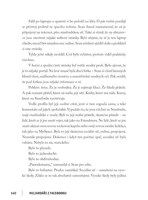 Miliardáři z Facebooku tvoří neodolatelně čtivý příběh o ztracené nevinnosti – a o neobyčejném vytvoření firmy, která způsobila revoluci ve způsobu, jak se mohou propojit stovky milionů lidí.