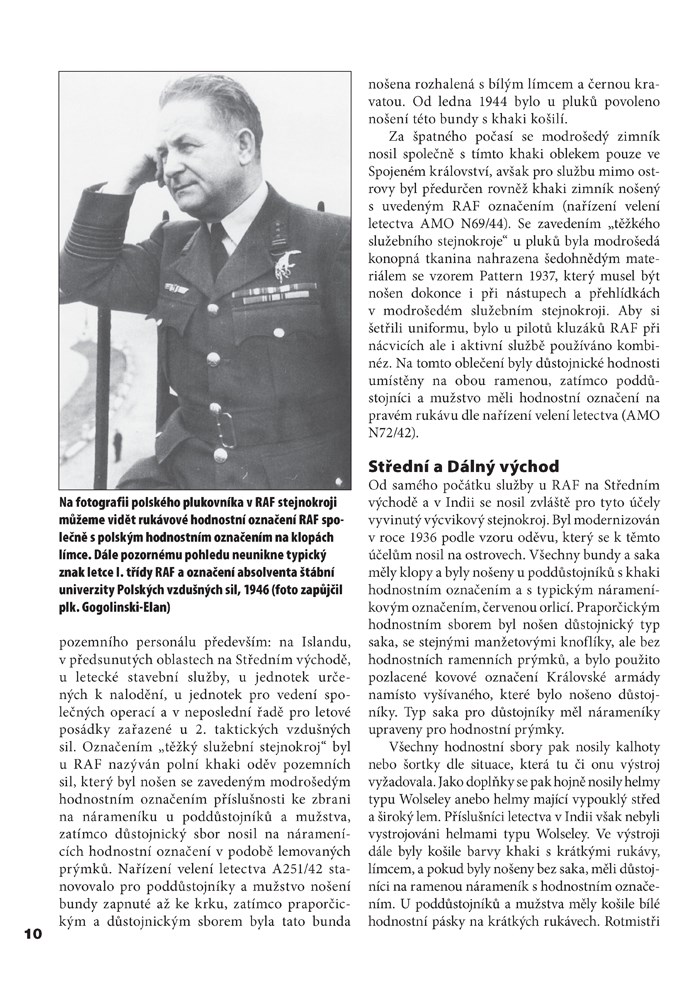 Význam Královských vzdušných sil při vedení leteckých operací za druhé světové byl zcela zásadní. Však také jejich letadlům a činnosti bylo ze strany historiků věnováno již mnoho pozornosti. Velice málo úsilí bylo ovšem vyvinuto na studium jejich uniforem a letecké výstroje. A právě tento nedostatek se snaží vyplnit tato publikace. Je koncipována jako přehled „výstroje“ a byla vypracována na základě dochovaných uniforem ze sbírky muzea Královských vzdušných sil v Hendonu, z fotografi í, leteckých publikací, RAF technických popisů a z objednávek velitelství vzdušných sil. Přináší komplexní pohled na uniformy a vybavení různých příslušníků RAF v daném období.