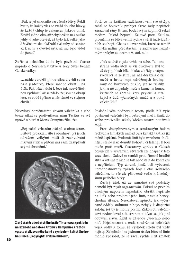 V 1. století před naším letopočtem Strabo o Keltech napsal: „Celé jejich plémě... vášnivě miluje válku, plni nadšení se ochotně vrhají do bitev... a ať už je podnítíte jakoukoliv záminkou, jsou připraveni čelit nebezpečí, i kdyby v tu chvíli nebyli vyzbrojeni ničím jiným než vlastní silou a odvahou.“ Tato kniha umožňuje porozumět životu keltského válečníka a jeho prožívání bitvy, ať už se jí účastnil jako pěšák, jezdec nebo vozataj. Podrobně popisuje keltskou společnost a zkoumá rituální charakter keltského válečnictví, od nahých gaesatae po bojovníky pomalované borytovou modří.