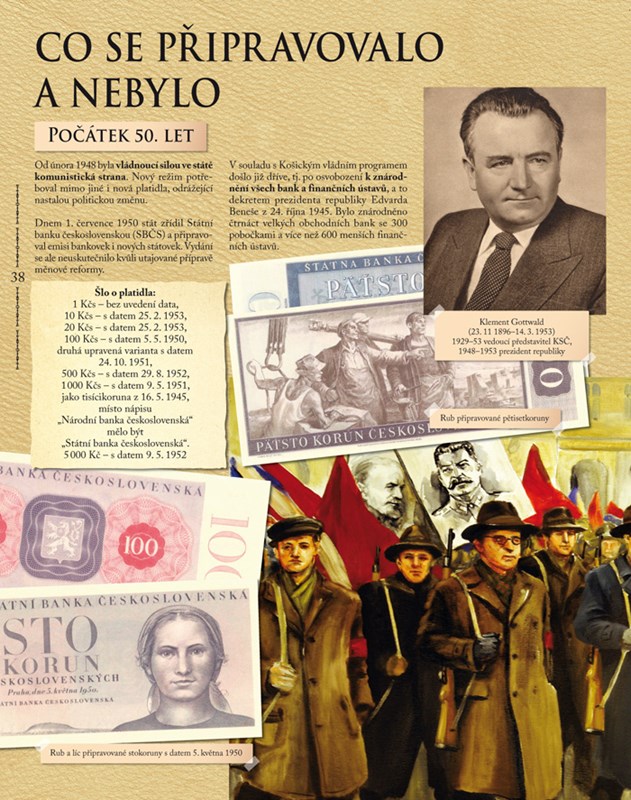 Socialistické bankovky zrcadlí ideologii a budovatelský optimismus tehdejší doby – a i ony tvoří nedílnou součást naší historie. Kniha postupuje krok za krokem až po současnost, kdy stojíme před zavedením eura.