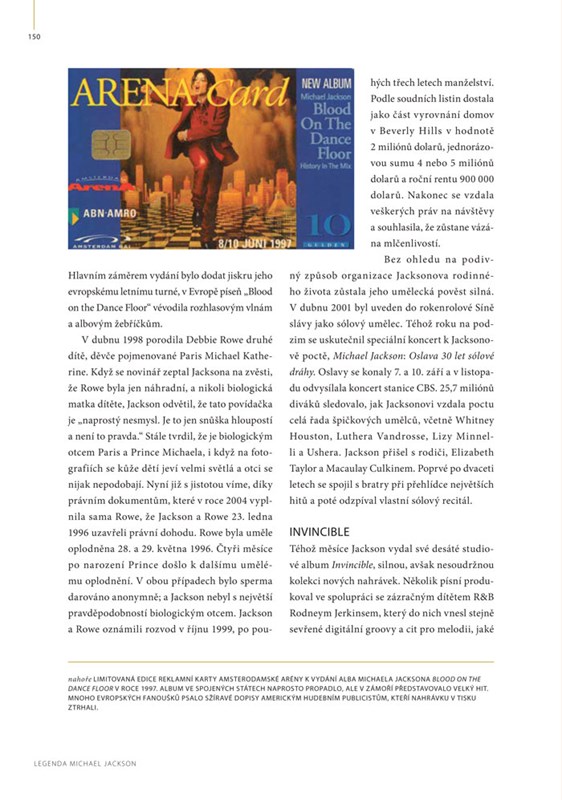 Michael Jackson je osobnost, která nesmazatelným způsobem zasáhla do dalšího vývoje hudby. Kniha Legenda Michael Jackson přináší podmanivý příběh tohoto člověka a umělce protkaný unikátními fotografiemi a předměty, které dokreslují jeho fascinující, složitý život. Díky své koncepci, jako Muzeum v knize, přináší publikace spoustu vzácných vyjímatelných předmětů. Můžete tak vzít do vlastních rukou například: