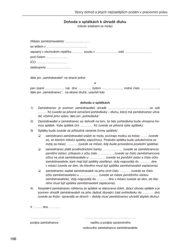 Pro snadnější aplikaci pracovního práva jsou připojeny vzory nejčastěji používaných dohod.