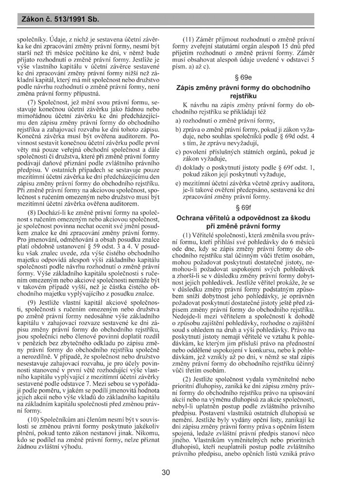 - novelizované znění obchodního zákoníku, nový zákon o evropské družstevní společnosti, zákon o evropské společnosti, zákon o evropském hospodářském zájmovém sdružení, zákon o státním podniku, vyhlášku o závazných formulářích na podávání návrhů na zápis do obchodního rejstříku včetně příloh a další vyhlášky a nařízení vlády.
