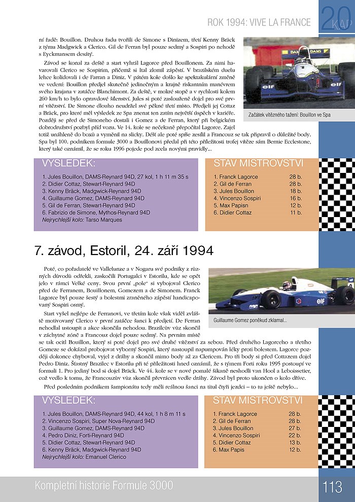 V roce 2004 se jel poslední závod v dvacetileté historii mezinárodního šampionátu FIA formule 3000. Seriál závodů představoval druhou nejvyšší třídu silničního automobilového sportu v Evropě a během své historie okamžiky slávy i úpadku. Vzešlo z něj mnoho talentovaných jezdců, kteří pak pokračovali dále do F1. Dokázal ovšem i kariéry několika jezdců krutě ukončit. Někdy se o účast v závodech formule 3000 ucházelo na čtyřicet pilotů, jindy se na startu sešlo jen kolem tuctu vozů...
