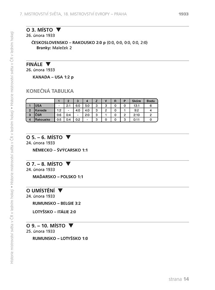 Při příležitosti Mistrovství světa v hokeji 2004, které opět zavítalo do Prahy, vám autor nabízí ohlédnutí za předcházejícími šampionáty, které se konaly na našem území. Od třetího Mistrovství Evropy a prvního šampionátu u nás v roce 1912 vás postupně bude provázet všemi dalšími a nabídne vám u každého z nich vedle informací i jeho kompletní výsledky, statistiky a tabulky. Na mnoha těchto mistrovstvích zaznamenali naši hokejisté výrazné úspěchy. Spolu s vámi doufáme, že v budoucnosti budou naši hokejisté sbírku mistrovských medailí rozšiřovat.