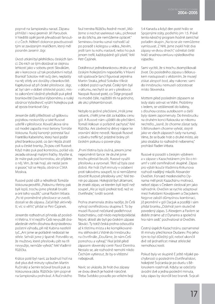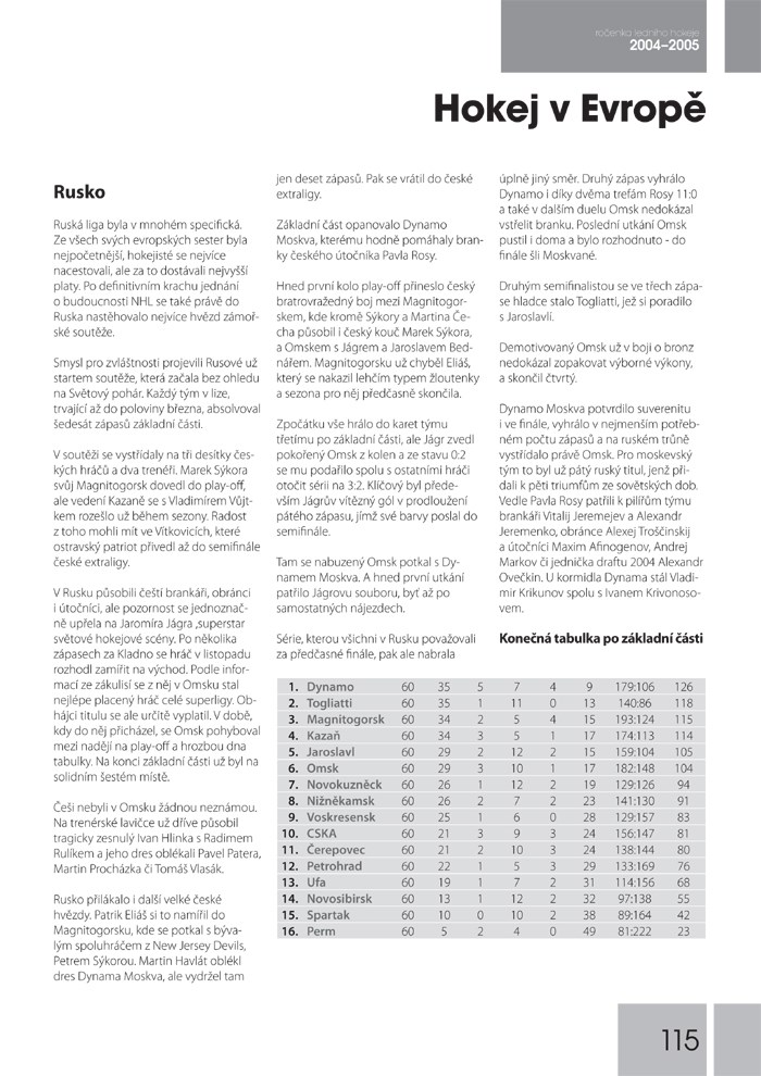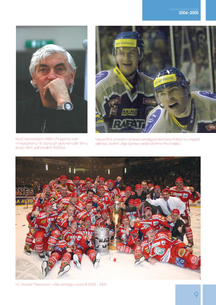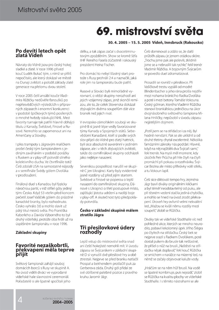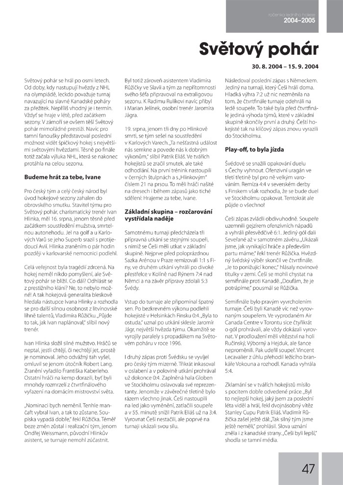 Spolu se začátkem nové sezony vám opět přinášíme souhrn všeho, co se stalo v českém i světovém hokeji v sezoně uplynulé. Opět zde najdete kompletní statistiky, tabulky, zajímavé fotografie a hlavně spoustu informací o českém hokeji, stejně jako všechno nejzajímavější z Evropy i ze zámoří.