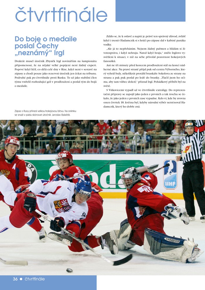 Čeští hokejisté napsali další poutavý příběh do své historie. I když poněkud netradiční. Český národ po slavném triumfu na olympiádě v Naganu a pěti titulech mistrů světa za posledních deset let bere jako úspěch pouze zlato. A i to už mnohým zevšednělo. Přesto se našla parta hokejistů, která nabídla hokejovým fandům novou zvěst: zlatá generace z Nagana nemusí být pro malou zemi uprostřed Evropy tou poslední!