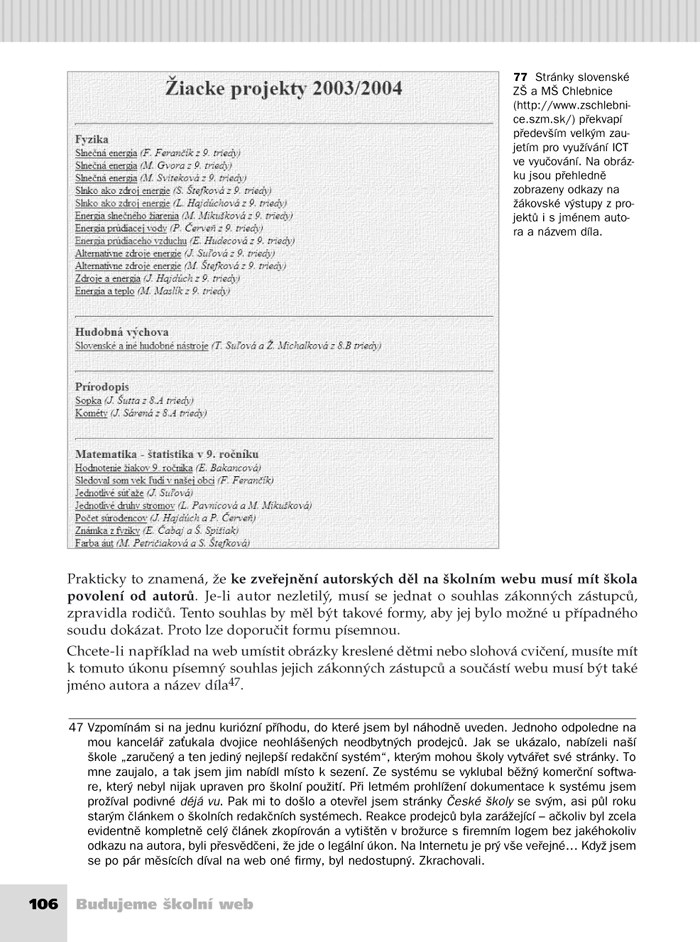 - zákony a nařízení týkající se školních webů