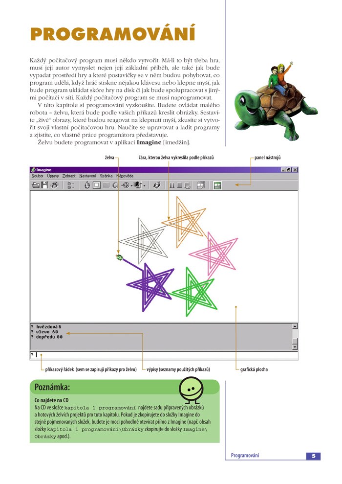 Seznámíte se s programováním. Budete ovládat počítačovou želvu, která bude podle vašich pokynů kreslit nebo počítat. Vytvoříte svoje vlastní programy, například jednoduchou počítačovou hru.