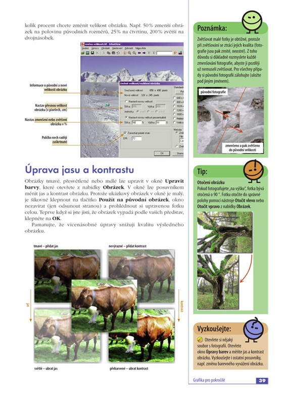 Naučíte se kreslit náročnější a lépe vypadající obrázky. Vyzkoušíte si, jak získávat a upravovat digitální fotografie.