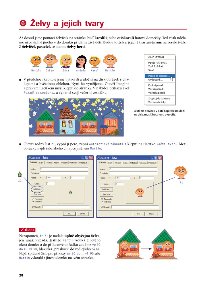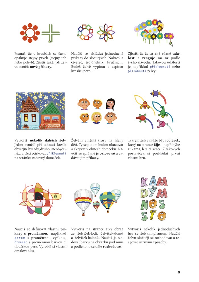 Učebnice tě seznámí s programováním v prostředí Imagine Logo. Budeš ovládat malého robota na obrazovce – želvičku, která tě bude poslouchat na slovo. Nejprve s ní nakreslíš roztodivné obrázky, potom naprogramuješ složitější projekty a na konci knihy už budeš vytvářet své první hry. Ty pak můžeš poslat kamarádovi e-mailem nebo umístit na Internet.