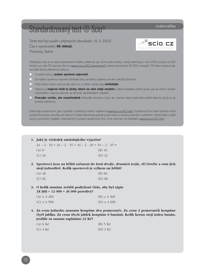 V publikaci naleznete velké množství originálních testů použitých v rámci přijímacích zkoušek, včetně standardizovaného testu Scio.