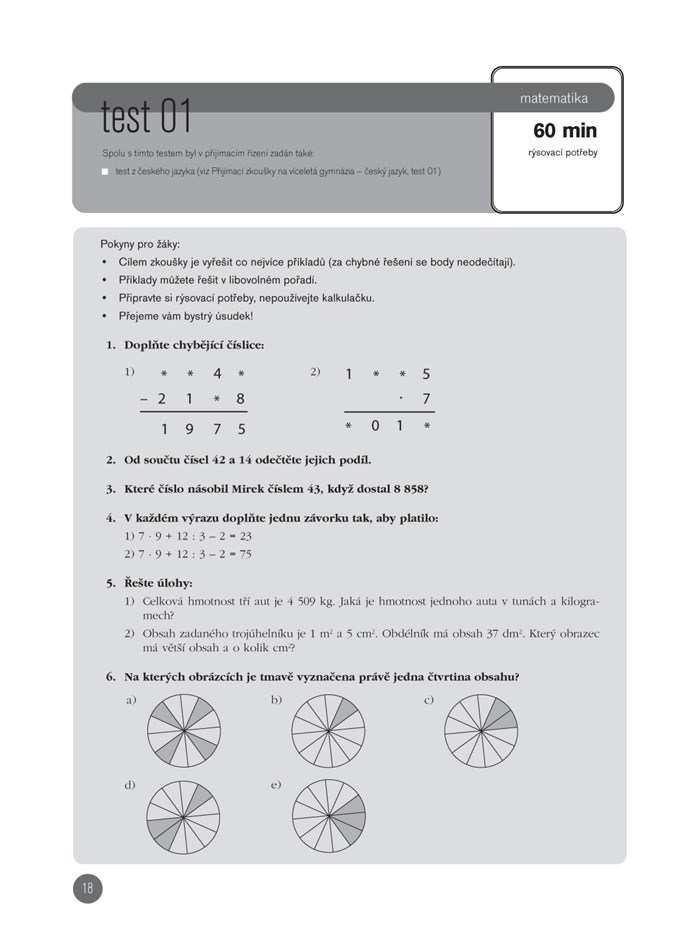 Publikace obsahuje originální testy z přijímacích zkoušek z matematiky na osmiletá a šestiletá gymnázia.