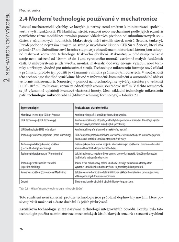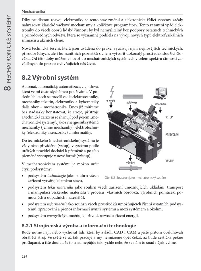 Mechatronika je relativně mladý obor, vzniklý implementací stále dokonalejších prvků výpočetní techniky do původních pouze elektromechanických strojů, které tak získávají novou kvalitu. Jejich vlastnostmi i metodikou konstrukce se zabývá právě mechatronika, jež se rychle prosazuje i v naší vzdělávací soustavě. Kolektiv erudovaných autorů, podpořený Českomoravskou společností pro automatizaci, proto připravil tuto učebnici, která může být dobrou pomůckou při výuce na technických školách.