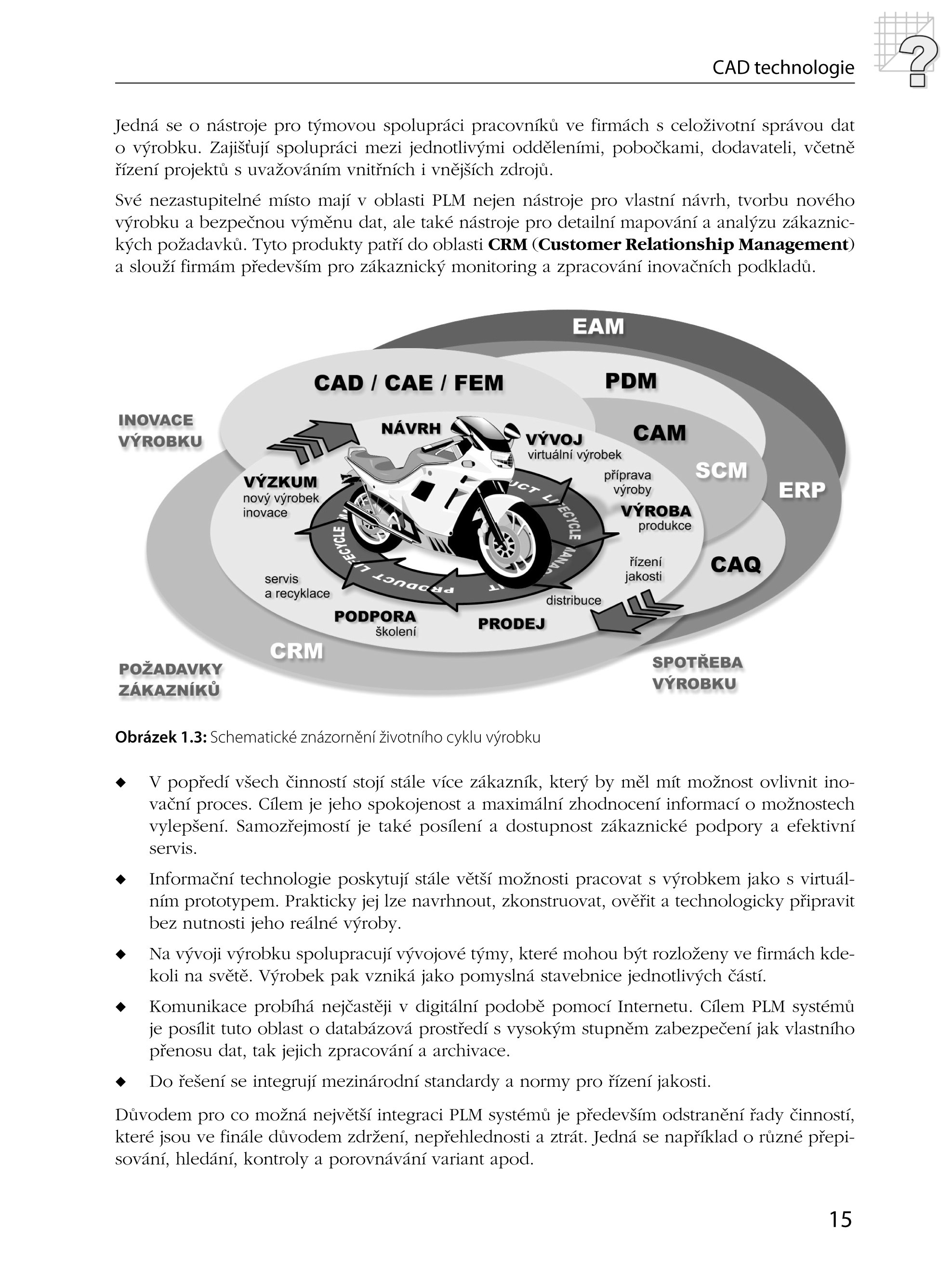 Obsah učebnice je rozdělen do 12 samostatných kapitol, doplněných stovkami ilustračních obrázků. Jednotlivé kapitoly vás systematicky provedou obsluhou AutoCADu od základů až po jeho nasazení v infrastruktuře systémů PLM. Výklad problematiky je koncipován podle osvědčené metodiky využívané ve výuce CAD aplikací na našich i zahraničních školách s výrazným podílem samostatných cvičení a týmových projektů.