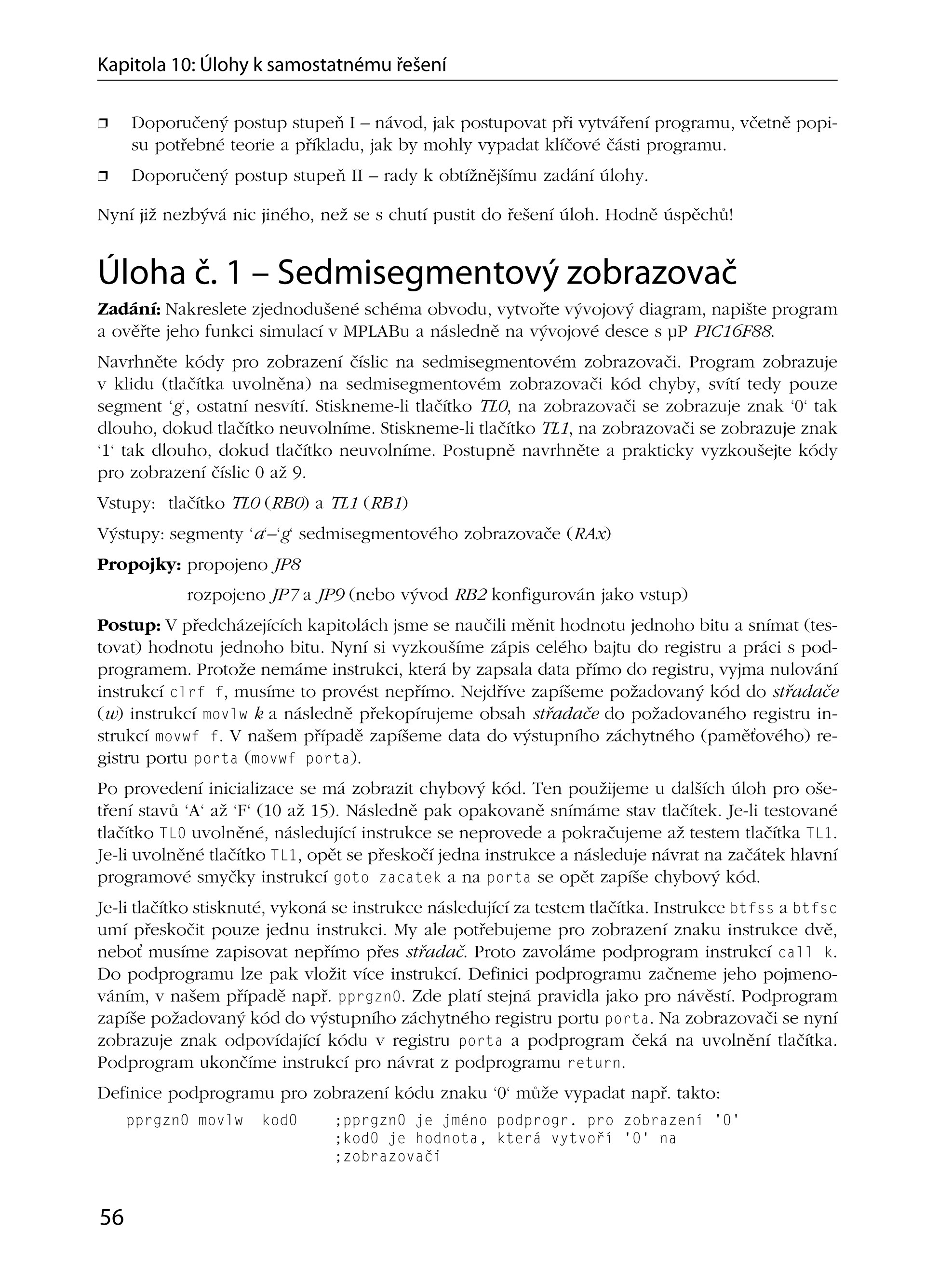 V deseti kapitolách se postupně naučíte, jak vytvořit, přeložit, odladit a otestovat vlastní program pro mikroprocesor. Nově nabyté poznatky si můžete vyzkoušet na jedenácti úlohách určených k samostatnému řešení. V přílohách najdete důležité přehledy instrukcí, direktiv, varování a chybových hlášení, učebnice tak splní i roli referenční příručky. Publikace vás mimo jiné naučí, jak: