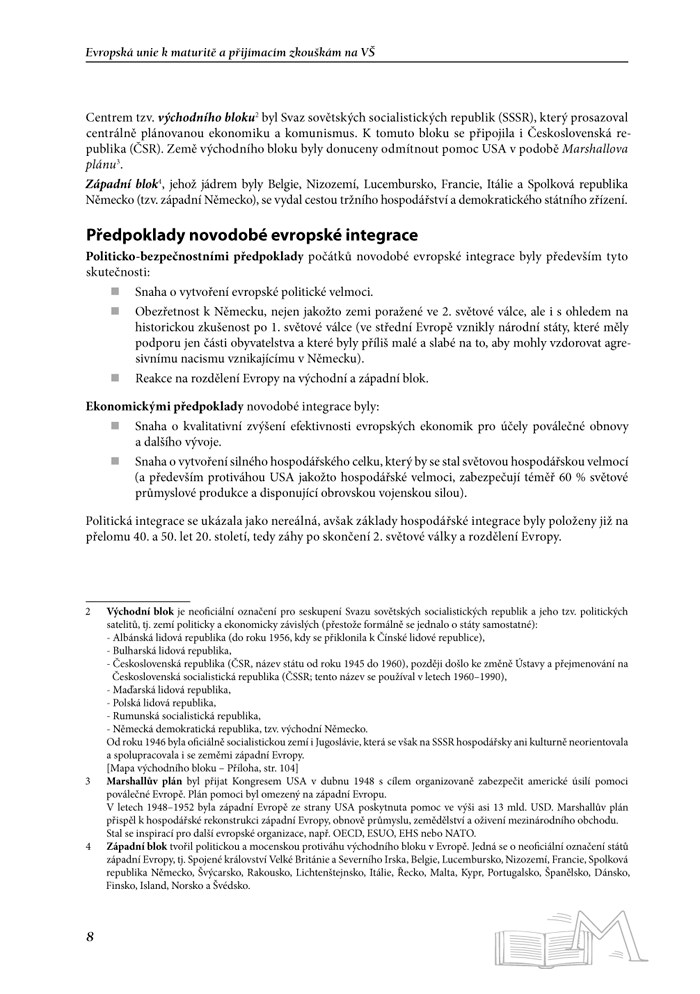 Součástí znalostí, se kterými by středoškoláci v současné době měli přicházet k maturitě, je i problematika Evropské unie (a místa České republiky v ní), nejvýznamnějších celosvětových mezinárodních organizací, globalizace či trvale udržitelného rozvoje. Kniha flexibilně reaguje na vzrůstající požadavky kladené na středoškolské studenty. Stává se tak nejen cenným pomocníkem v přípravě na maturitní zkoušku, ale i na přijímací zkoušky na vysokou školu v oborech evropská studia, mezinárodní vztahy, politologie a v příbuzných společenských vědách.