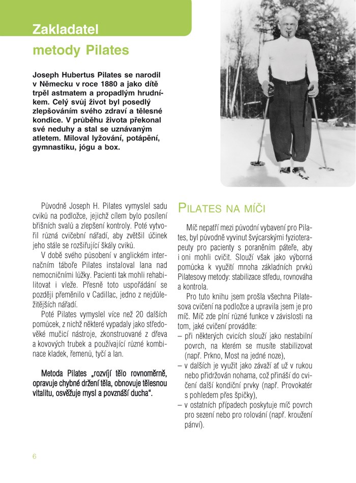 Pilates je cvičební metoda, která posiluje svalstvo, ale neudělá z nás hranaté svalnatce, svaly jsou pevné, ale zůstavají štíhlé. Kromě toho „rozvíjí tělo rovnoměrně, opravuje chybné držení těla, obnovuje tělesnou vitalitu, osvěžuje mysl a povznáší ducha“.