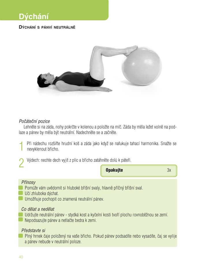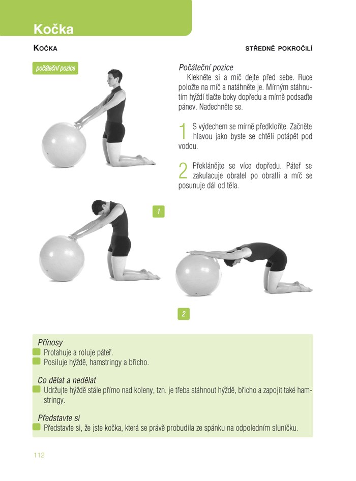 - a nechybí ani praktické rady, jak správně vybrat velikost míče a jak předejít bolesti a případným potížím při cvičení.