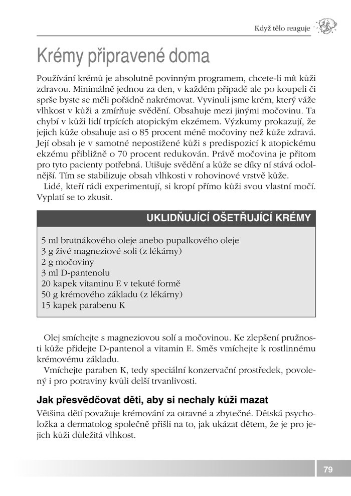 - Návody na přípravu domácích prostředků proti alergickým projevům (masti, kapky, nosní sprcha, vlastnoručně vyrobené chladivé bonbóny, aromaterapeutické pomůcky, čaje, domácí jogurty, léčivé nápoje…).