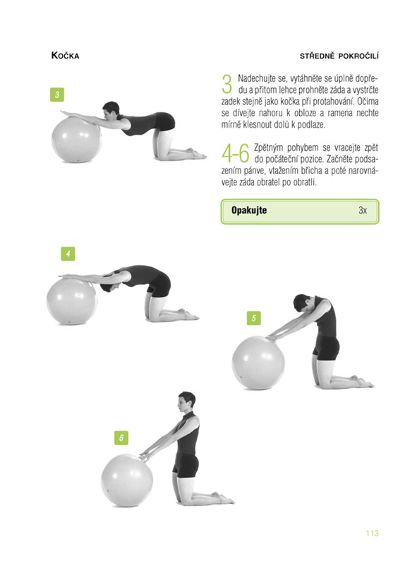 - a nechybí ani praktické rady, jak správně vybrat velikost míče a jak předejít bolesti a případným potížím při cvičení.