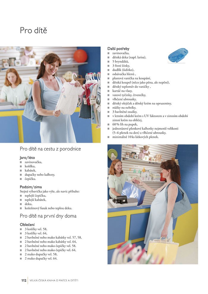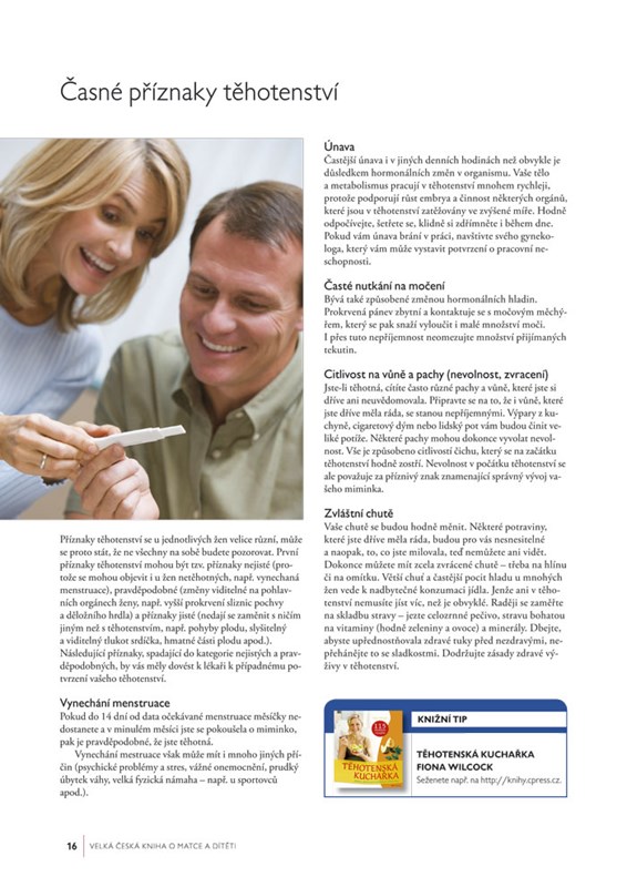 - Doporučené pohybové aktivity v těhotenství, výživu, potravinové doplňky, možnosti oblékání, jak a zda cestovat, pomůcky, přírodní prostředky a způsoby ulevující těhotenským obtížím.