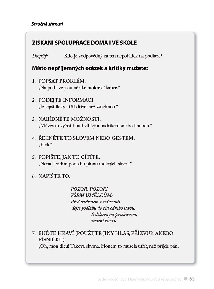 Pomocí unikátní strategie v komunikaci a díky názornosti kreslených doporučených dialogů dokázaly autorky jak rodičům, tak učitelům nastínit, jak řešit každodenní problémy, které mohou u dětí ve vztahu k učení nastat.
