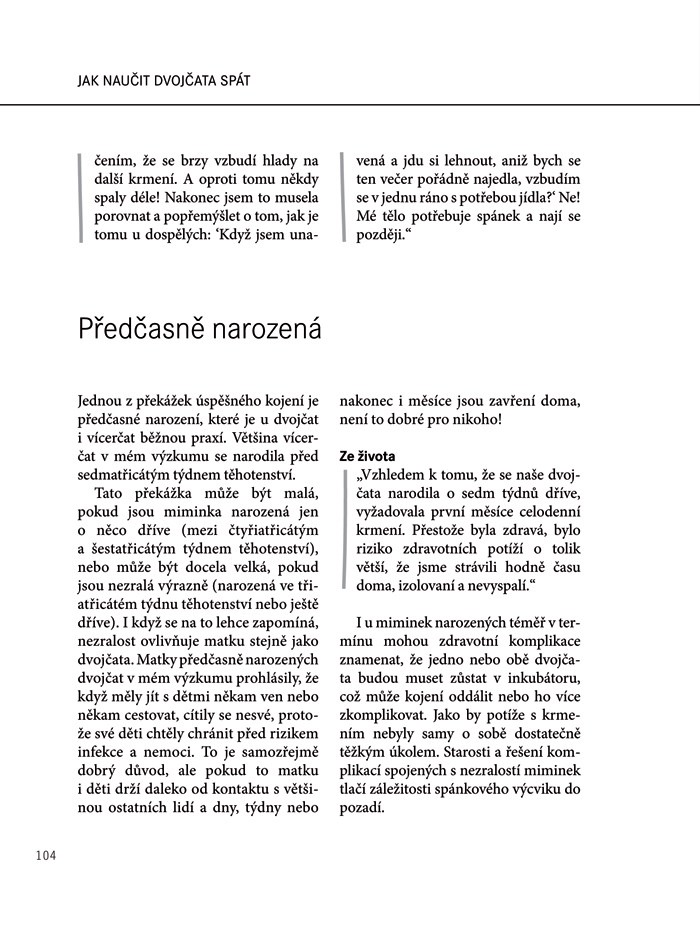 Tato kniha vás naučí, jak doslova synchronizovat spánek vašich dětí, aby usínaly současně a budily se obě přibližně v tentýž čas a aby se doba jejich nepřerušovaného spánku upravila tak, abyste se dokázali vyspat i vy.