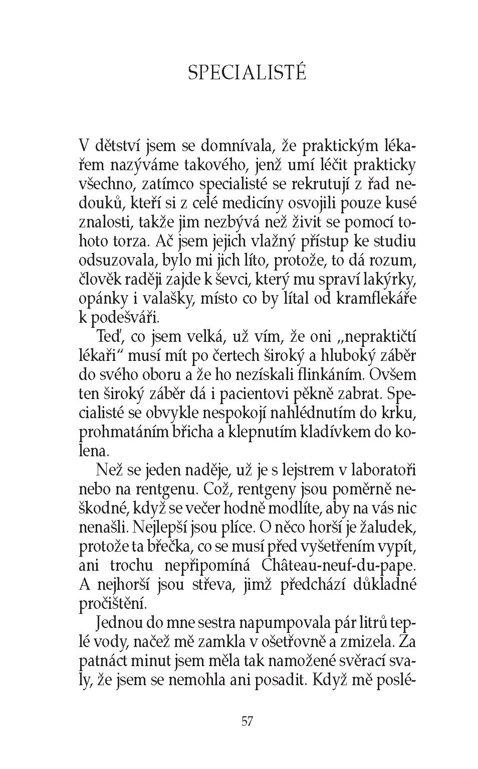 „Věřím, že vás moje postřehy z čekáren, ordinací, lékáren i laboratoří zaujmou a při troše dobré vůle i pobaví. Hodně zdraví, či aspoň štědrou pojišťovnu vám přeje Ivanka Devátá.“