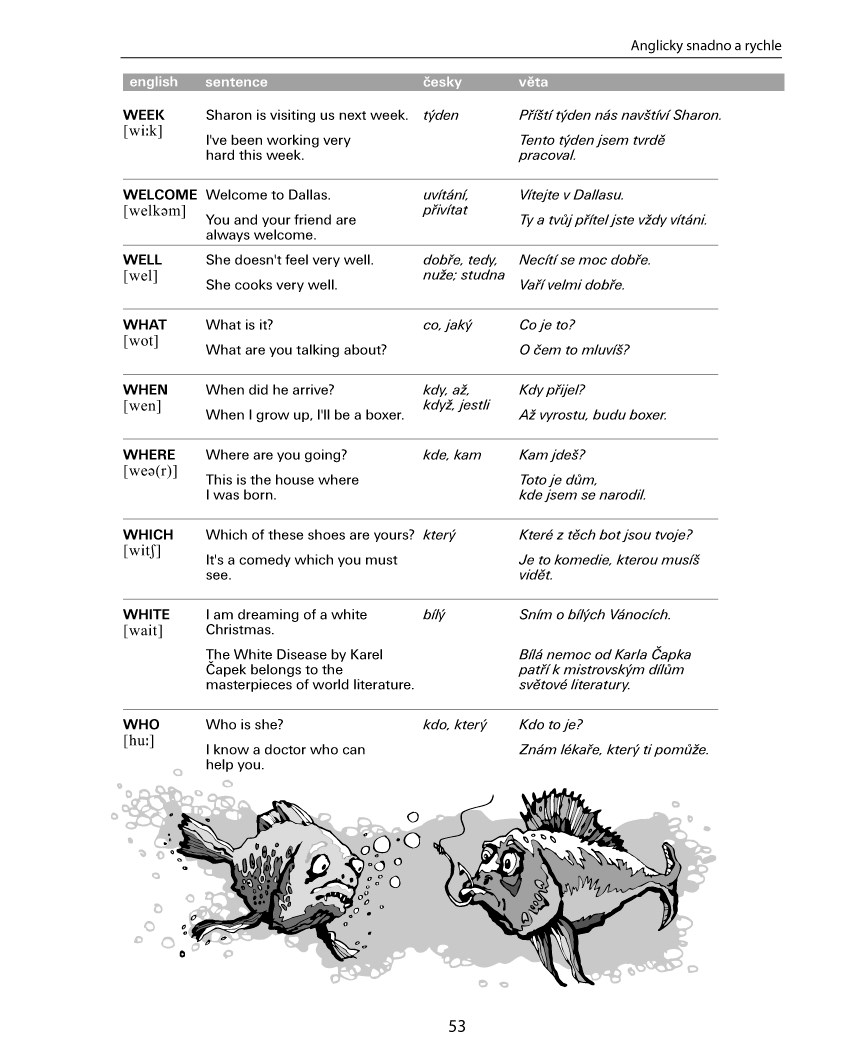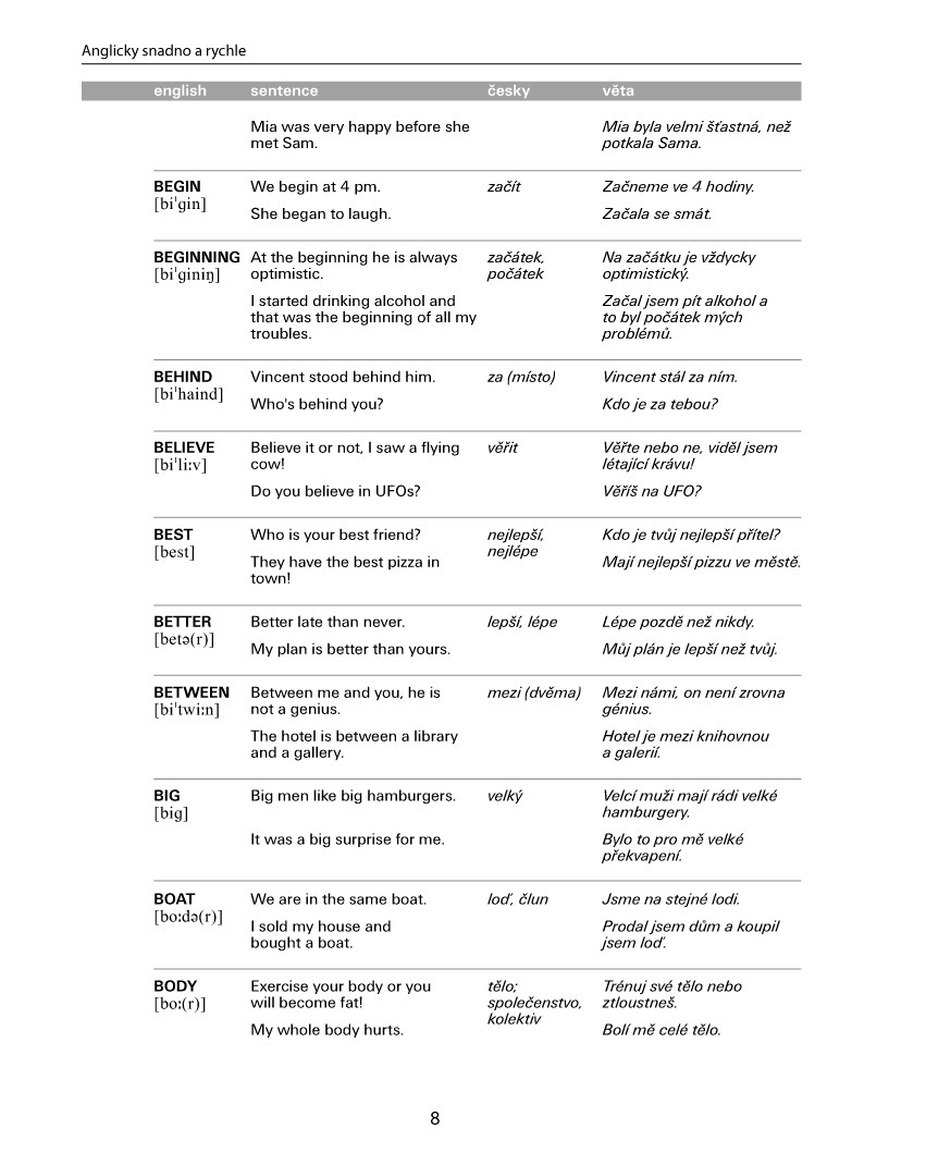 Útlá knížečka obsahuje 500 nejpoužívanějších anglických slovíček s uvedenou výslovností a českým překladem. U výrazu najdete připojeny dvě typické anglické fráze - abyste si vštípili, jak je výraz používán v běžném jazyce. Součástí balení je AUDIO CD, které nabídne veškerý anglický text namluvený rodilým mluvčím. Můžete se tak slovíčka i fráze učit poslechem i pohledem zaráz. Brzy si je snadno a pevně osvojíte!