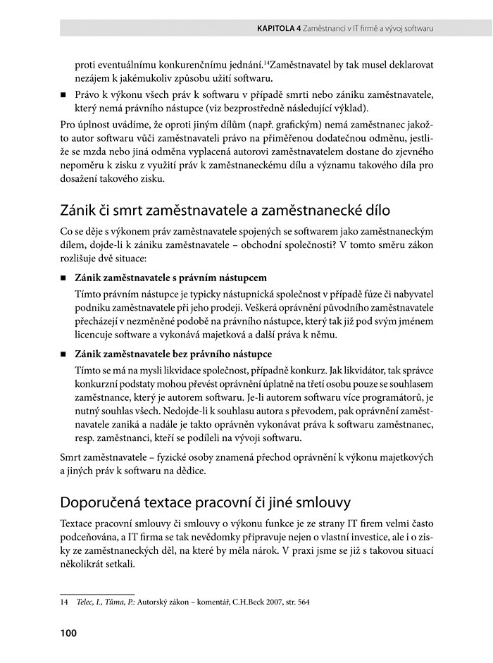 „Tato kniha by neměla být jen povinně založena do knihovny IT manažera. Příklady a praktické doporučení pro úpravy právních vztahů tuto knihu předurčují k častému použití jak na straně výrobců a dodavatelů softwaru, tak i na straně zákazníků.“
