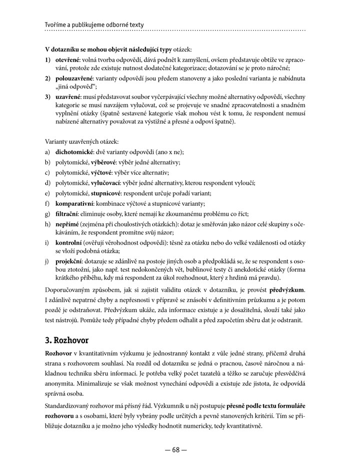 Publikace si klade za cíl seznámit čtenáře se základními pravidly pro psaní odborných textů, měla by být užitečným průvodcem při dlohé cestě od myšlenky k realizaci odborného výstupu. Knihu tedy přivítají vysokoškolští studenti, pedagogové, ale i manažeři, předkladatelé projektů, kteří publikují, vedou či tvoří kvalifikační a jiné práce, prezentují návrhy či výsledky projektů. Autoři postupují od výběru tématu, osnovy, hypotézy, přes metodologii vědy, analýzu dat, formální a obsahovou stránku vědeckého textu, zdroje informací, možnosti publikování až k základům rétoriky a presentace.