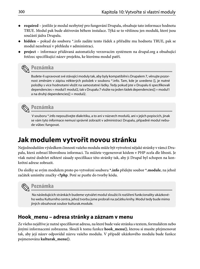 Zkušený autor vás ve zcela novém a rozšířeném vydání knihy pro Drupal 7 naučí vše nutné od instalace a konfigurace webu přes jeho správu až po praktické využití doplňků a modulů. Nově můžete k výuce využít cvičného webu přiloženého na CD. Nově se naučíte také tvořit vlastní moduly nebo postavit vlastní e-shop. Mimo množství návodů se autor podělí také o pokročilé tipy a triky získané dlouholetou praxí. Kniha je určena jak začínajícím tvůrcům webů, po nichž nevyžaduje žádné předchozí znalosti, tak pokročilým vývojářům.