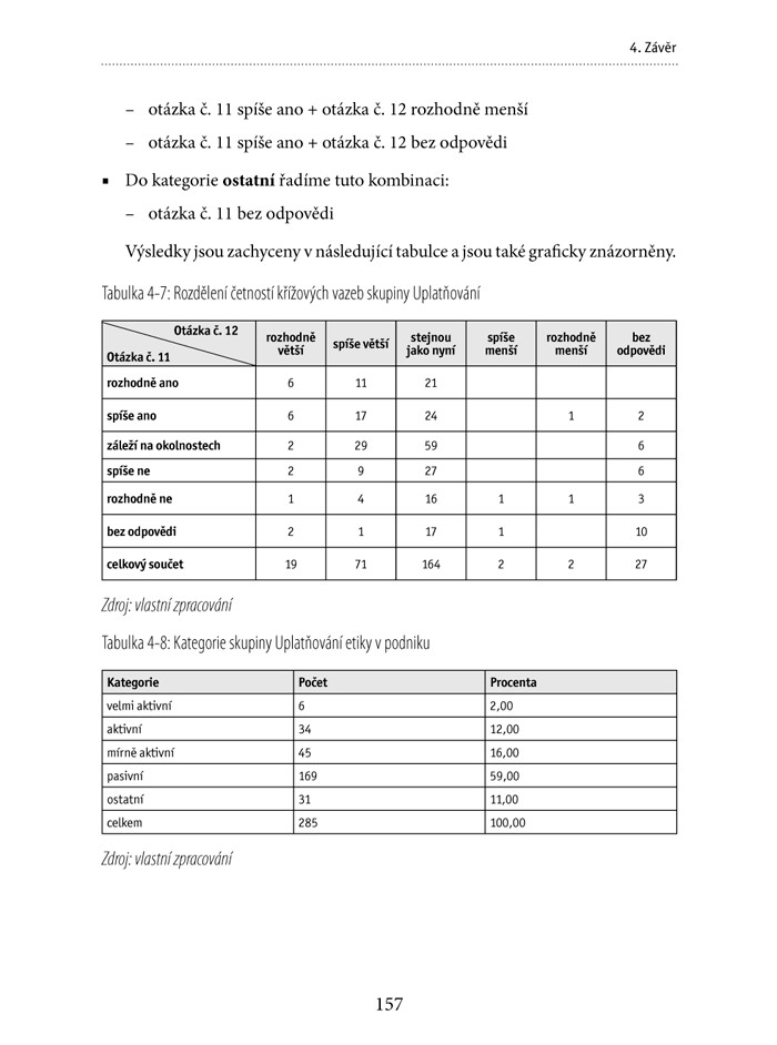 K těmto a dalším výsledkům dospěli autoři knihy Manažerská etika v rámci výzkumného šetření provedeného mezi vedoucími pracovníky českých firem. Situaci však nevidí pouze pesimisticky. Zlepšení stavu etiky v managementu lze dosáhnout, otázkou je, jakou cestou. Autoři knihy vidí řešení například:
