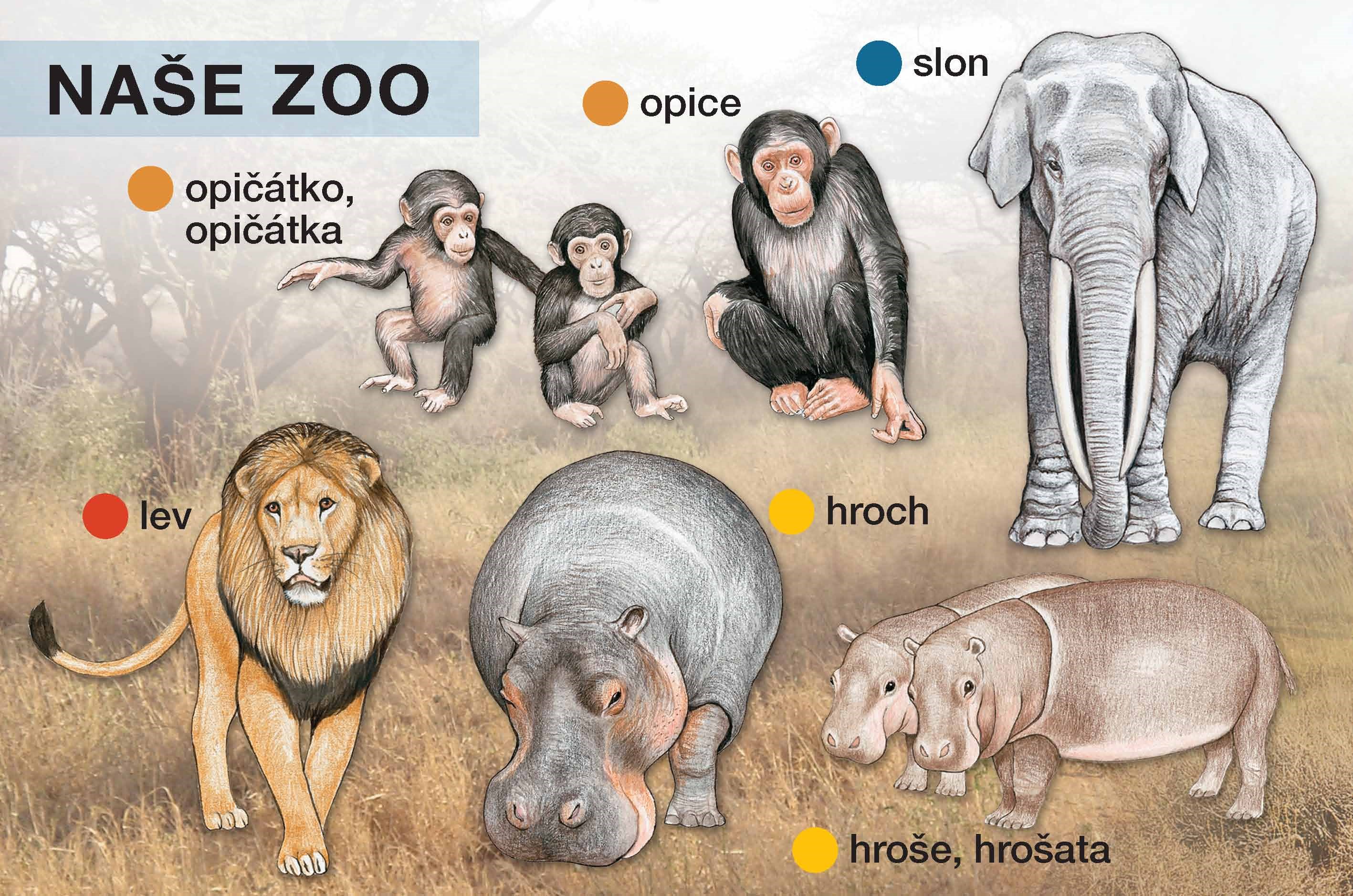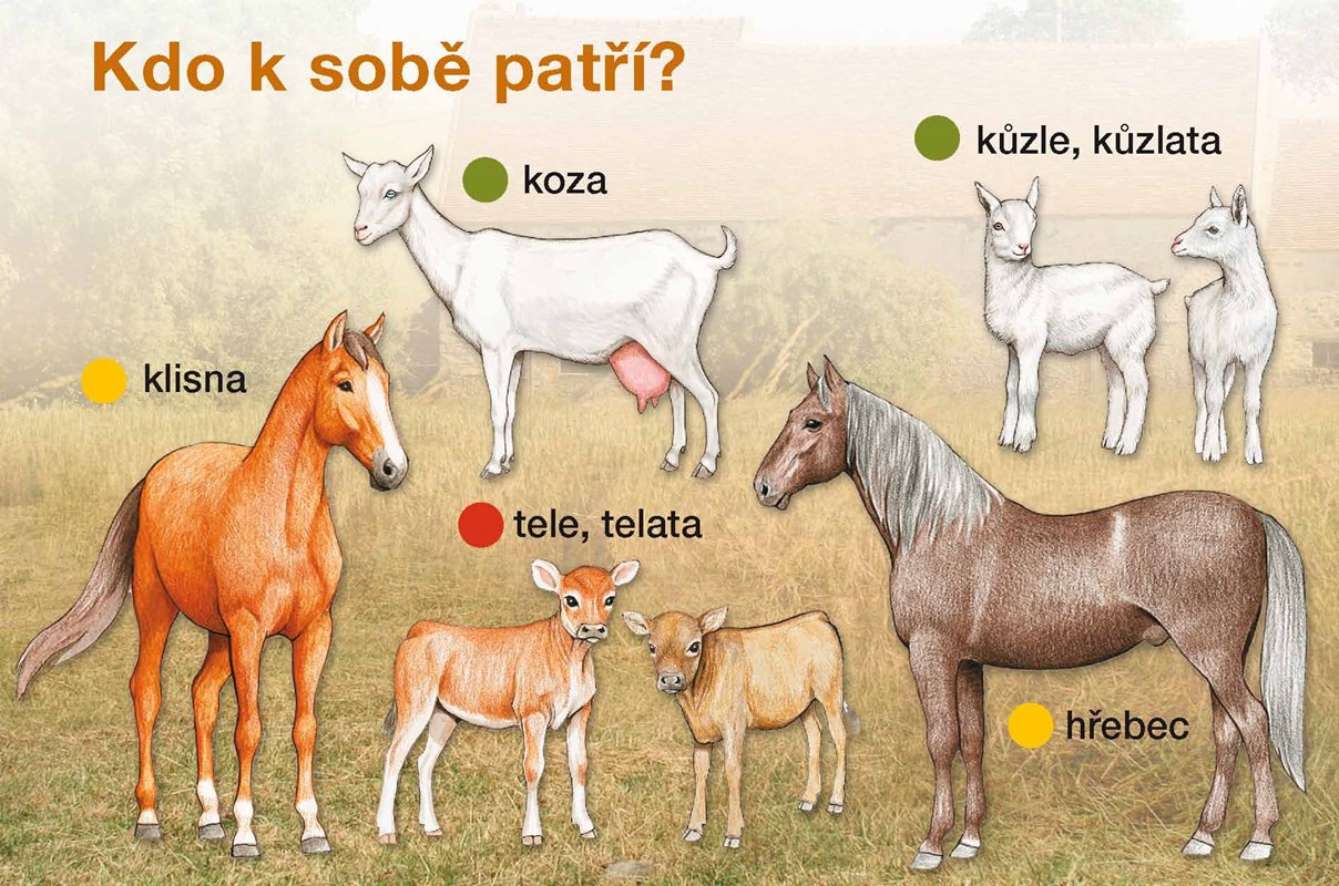 Pes, fena, štěně / štěňata... V poznávacím leporelu se nejmenší děti setkají se zvířaty. Naučí se rozeznávat a správně pojmenovat jednotlivé druhy, přiřazovat k samci samici a mláďata. Je rozděleno do oddílů: Náš dvůr, Náš les, ZOO a Naši mazlíčci.